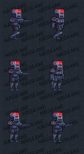 The second pack of the Drone Pack series contains three other characters from the Droid series, Droid Run and a spectacular futuristic war turret. The characters are in 80 x 80 resolution